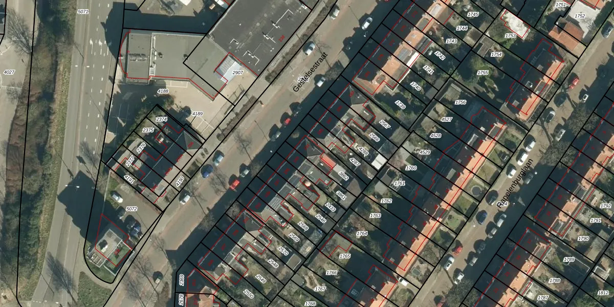 Het perceel waarop Gestelsestraat 191 staat heeft een oppervlakte van 182 m². Dit is een middelgroot perceel. De perceeloppervlakte wordt geregistreerd door het Kadaster. Gedetailleerde informatie over de maten van dit perceel kunt u vinden in het rapport Kadastrale kaart met maatvoering van Gestelsestraat 191.