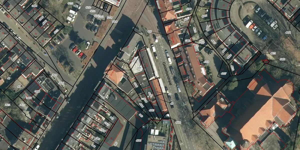 Het adres is gelegen op perceel 939 in de sectie C en de kadastrale gemeente Gestel. De kadastrale aanduiding is aldus GTL01-C-939. De gemiddelde perceelgrootte in Gestel is 1012,4 m². Dit perceel is kleiner: de perceeloppervlakte bedraagt 109 m². Het grootste perceel in de kadastrale gemeente is 73,6 ha. Het kleinste perceel heeft een oppervlakte van 0 m². Er zijn 5 adressen aanwezig op het perceel. In de Basisregistratie Kadaster (BRK) werden de grenzen van het perceel geregistreerd op 15-07-2011.