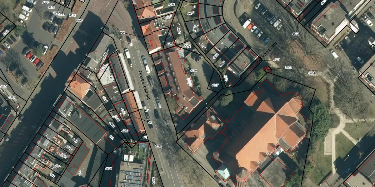 Het adres is gelegen op perceel 4319 in de sectie C en de kadastrale gemeente Gestel. De kadastrale aanduiding is aldus GTL01-C-4319. Het perceel is kleiner dan gemiddeld in Gestel. Het perceel is 958 m² groot, terwijl het gemiddelde ligt op 1012,4 m². De grootste perceeloppervlakte in de kadastrale gemeente is 73,6 ha. De kleinste oppervlakte bedraagt 0 m². Er zijn 12 adressen aanwezig op het perceel. In de Basisregistratie Kadaster (BRK) werden de grenzen van het perceel geregistreerd op 24-07-2006.