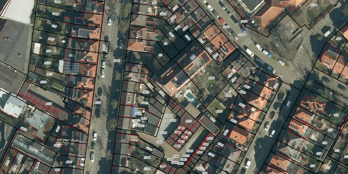 Het perceel waarop Gestelsestraat 25-N staat heeft een oppervlakte van 633 m². Dit is een groot perceel. De perceeloppervlakte wordt geregistreerd door het Kadaster. Gedetailleerde informatie over de maten van dit perceel kunt u vinden in het rapport Kadastrale kaart met maatvoering van Gestelsestraat 25-N.