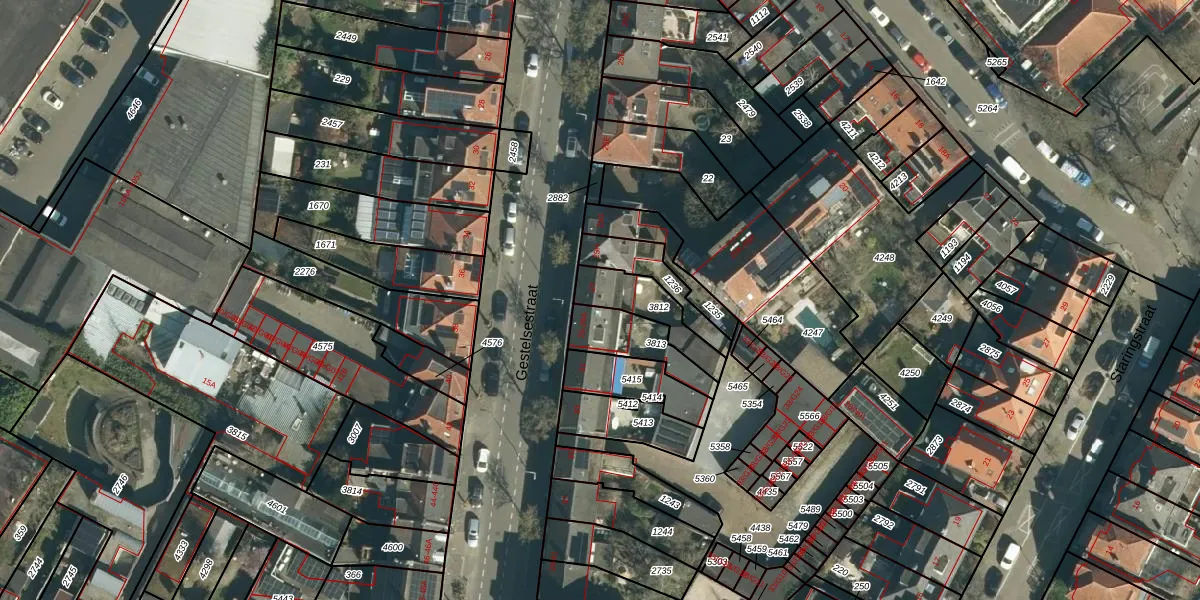 Gebruik de zoekbalk of klik op een perceel voor informatie over de adressen binnen dit perceel.