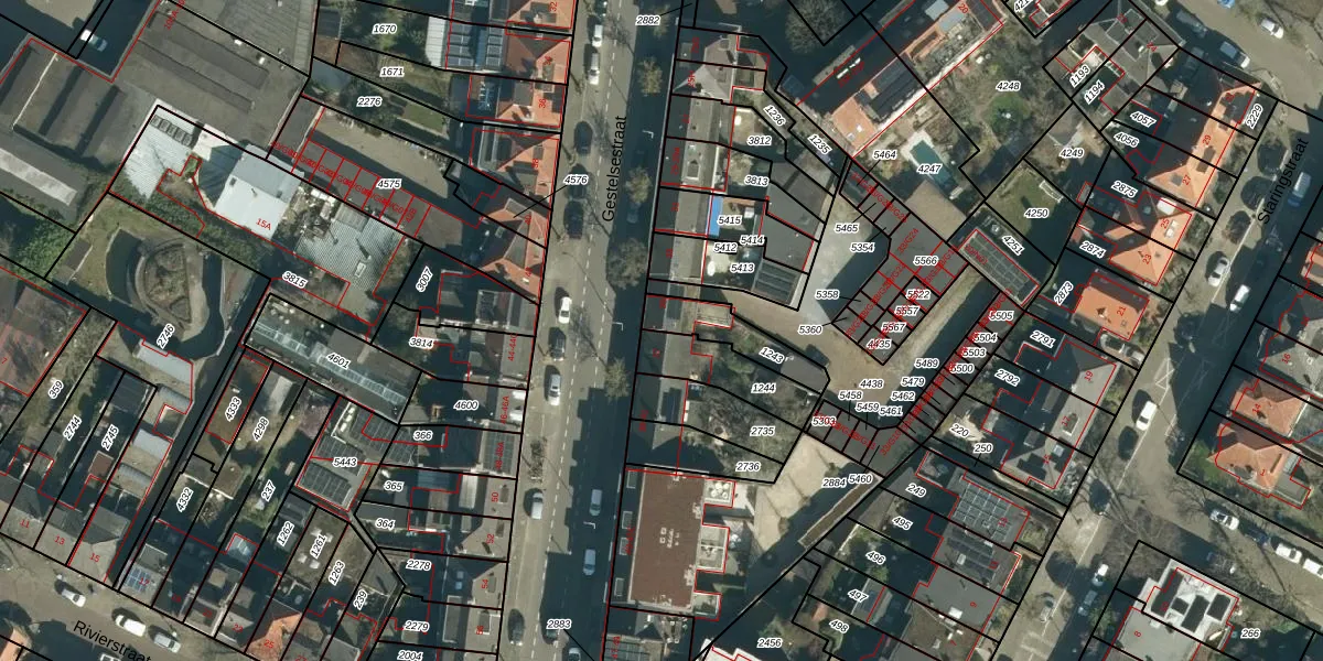 Het adres is gelegen op perceel 1243 in de sectie C en de kadastrale gemeente Gestel. De kadastrale aanduiding is aldus GTL01-C-1243. Het perceel is kleiner dan gemiddeld in Gestel. Het perceel is 150 m² groot, terwijl het gemiddelde ligt op 1012,4 m². Het kleinste perceel in de kadastrale gemeente is 0 m² groot. De grootste perceeloppervlakte is 73,6 ha. Er zijn geen andere adressen aanwezig op het perceel. De laatste wijziging in het de Basisregistratie Kadaster (BRK) was op 19-07-2006.