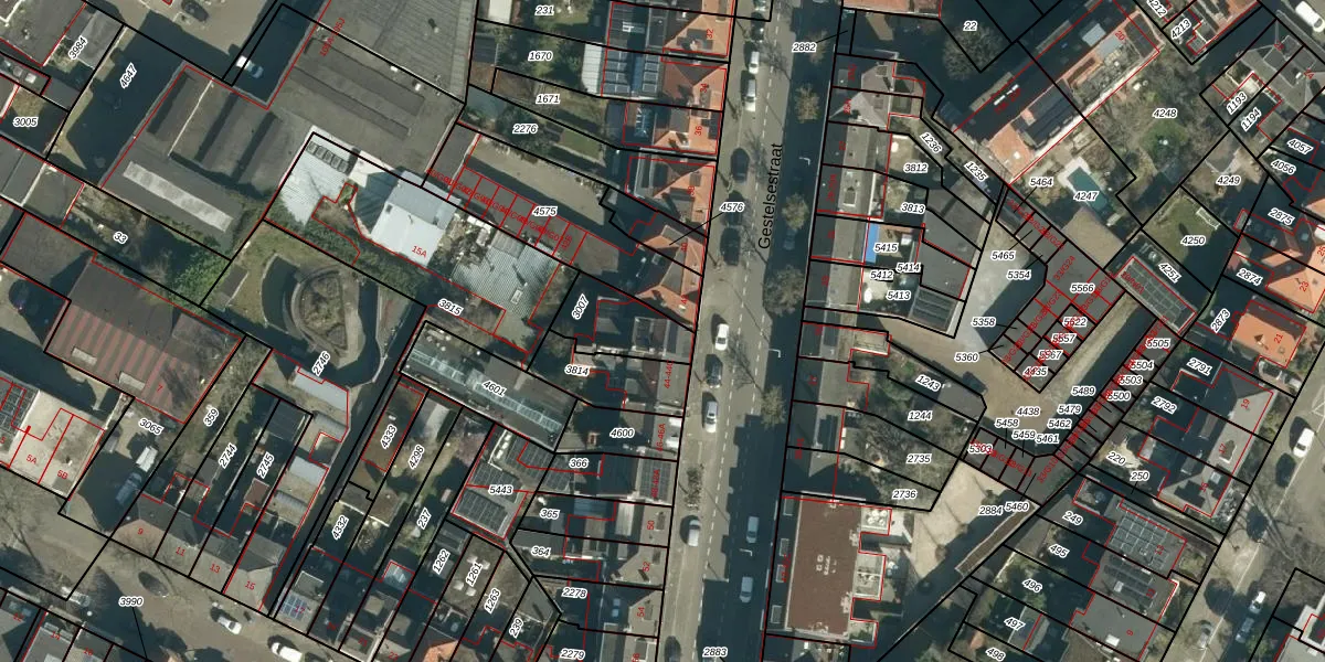 Het adres is gelegen op perceel 3007 in de sectie C en de kadastrale gemeente Gestel. De kadastrale aanduiding is aldus GTL01-C-3007. Het perceel is kleiner dan gemiddeld in Gestel. Het perceel is 170 m² groot, terwijl het gemiddelde ligt op 1012,4 m². De grootste perceeloppervlakte in de kadastrale gemeente is 73,6 ha. De kleinste oppervlakte bedraagt 0 m². Dit is het enige adres dat aanwezig is op het perceel. De huidige grenzen van het perceel zijn digitaal in de Basisregistratie Kadaster (BRK) geregistreerd op 19-07-2006.