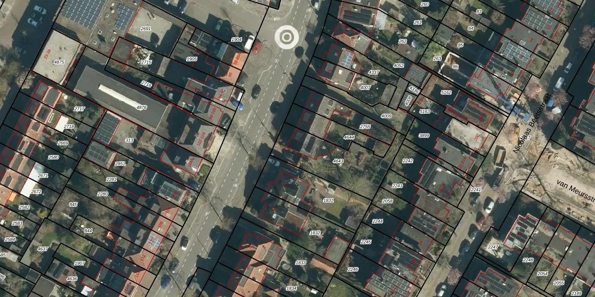 Gebruik de zoekbalk of klik op een perceel voor informatie over de adressen binnen dit perceel.