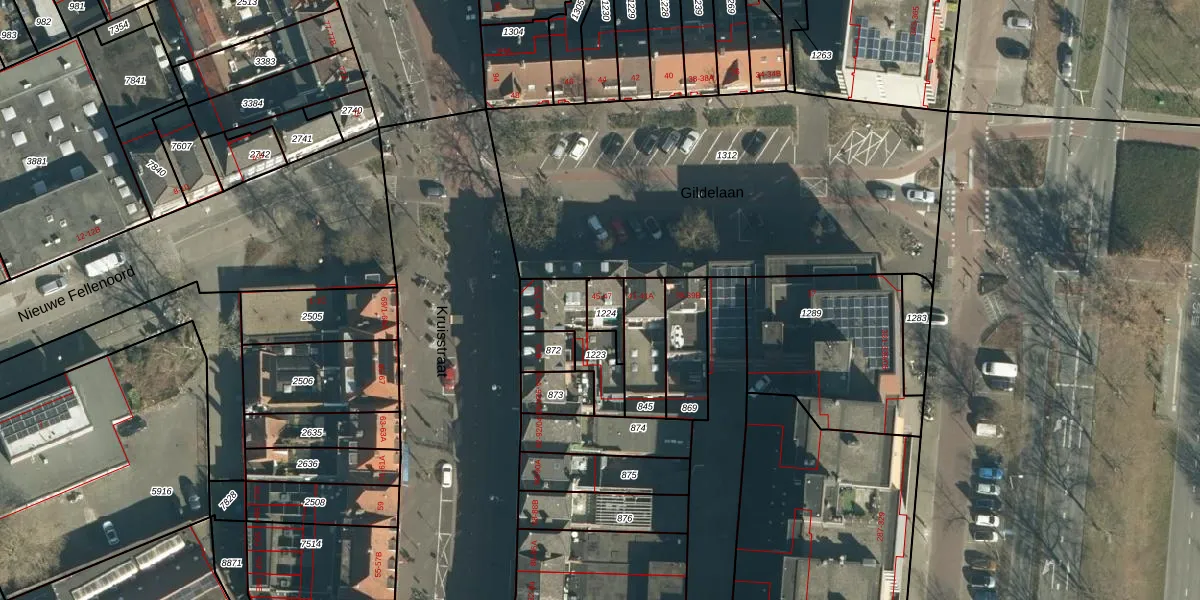 Gildelaan 45 is gelegen op kadastraal perceel WSL01K1224. Deze kadastrale aanduiding is uniek en wordt gebruikt door het Kadaster om eigendomsrechten en andere zakelijke rechten vast te leggen. Het perceel maakt onderdeel uit van de kadastrale gemeente Woensel.