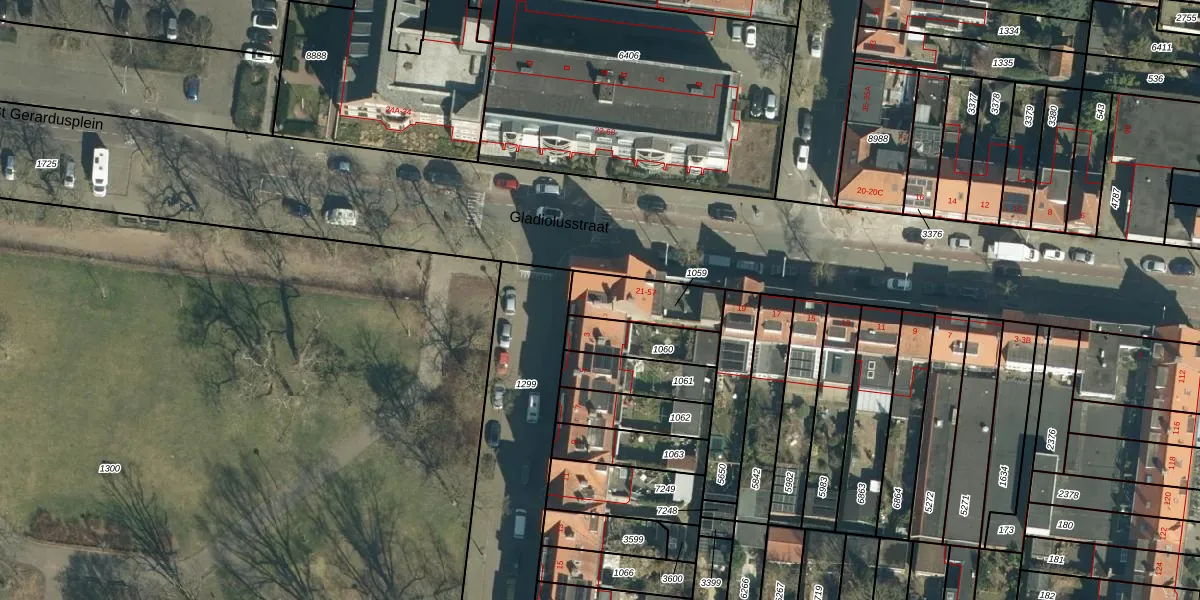 Gladiolusstraat 45 is gelegen op kadastraal perceel STM00D1059. Deze kadastrale aanduiding is uniek en wordt gebruikt door het Kadaster om eigendomsrechten en andere zakelijke rechten vast te leggen. Het perceel maakt onderdeel uit van de kadastrale gemeente Stratum.