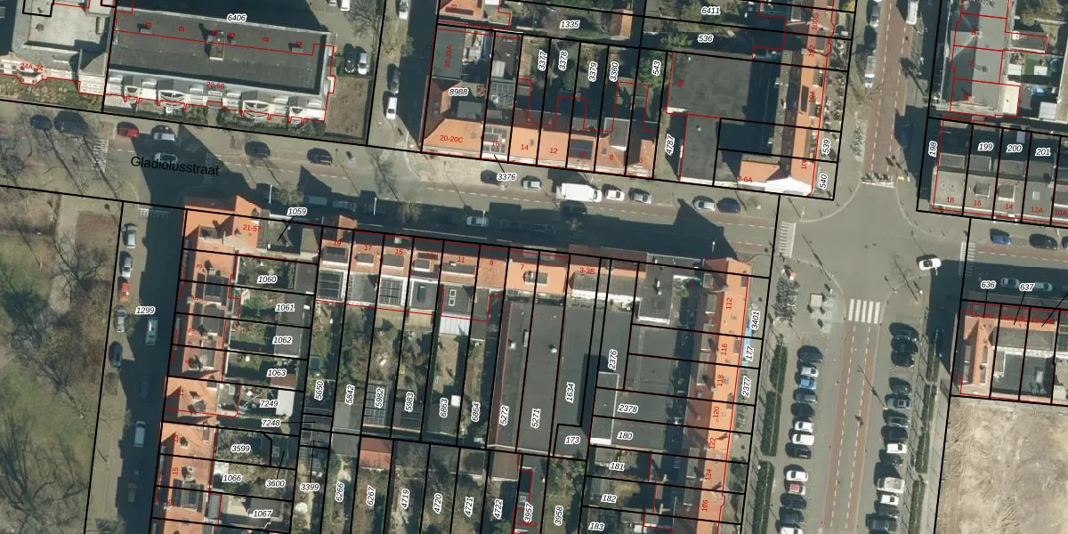 Het perceel waarop Gladiolusstraat 7 staat heeft een oppervlakte van 216 m². Dit is een middelgroot perceel. De perceeloppervlakte wordt geregistreerd door het Kadaster. Gedetailleerde informatie over de maten van dit perceel kunt u vinden in het rapport Kadastrale kaart met maatvoering van Gladiolusstraat 7.