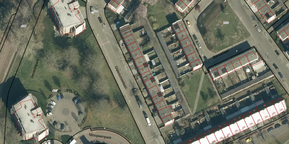 Glasounowlaan 16 is gelegen op kadastraal perceel GTL01D3018. Deze kadastrale aanduiding is uniek en wordt gebruikt door het Kadaster om eigendomsrechten en andere zakelijke rechten vast te leggen. Het perceel maakt onderdeel uit van de kadastrale gemeente Gestel.