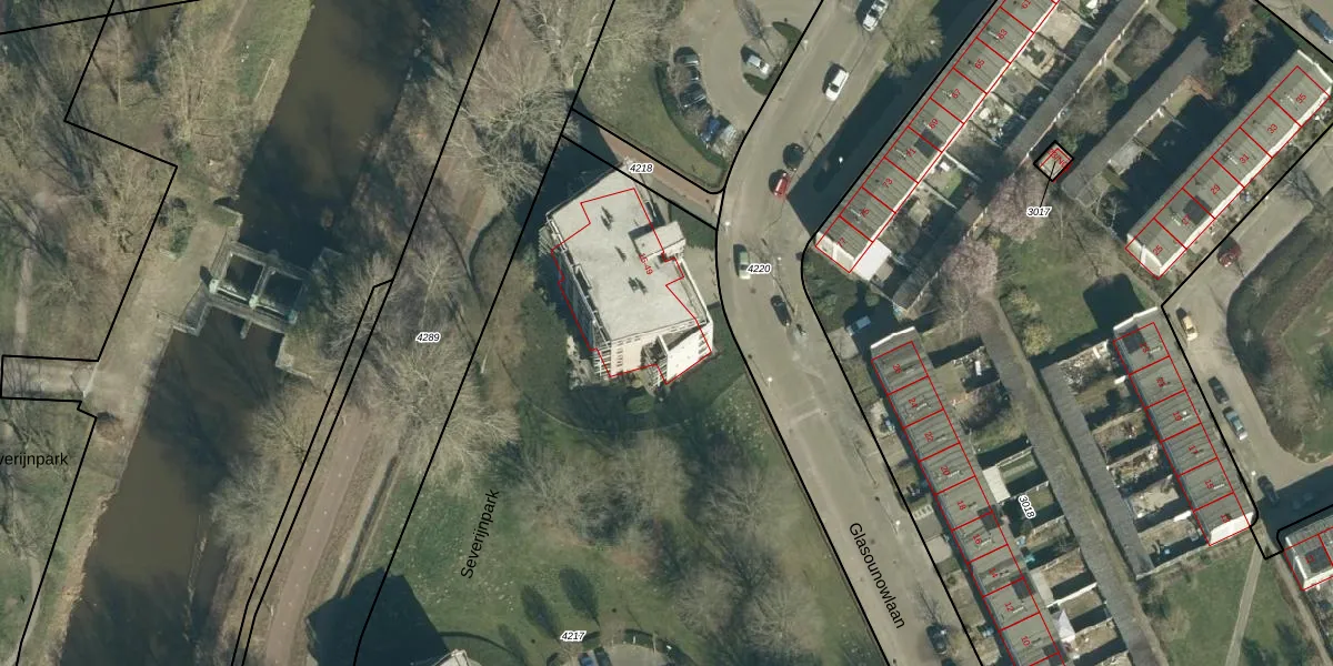Het perceel waarop Glasounowlaan 19 staat heeft een oppervlakte van 6616 m². Dit is een zeer groot perceel. De perceeloppervlakte wordt geregistreerd door het Kadaster. Gedetailleerde informatie over de maten van dit perceel kunt u vinden in het rapport Kadastrale kaart met maatvoering van Glasounowlaan 19.