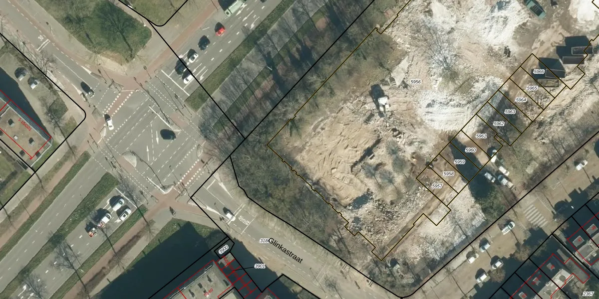 Het perceel waarop Glinkastraat 63 staat heeft een oppervlakte van 5515 m². Dit is een zeer groot perceel. De perceeloppervlakte wordt geregistreerd door het Kadaster. Gedetailleerde informatie over de maten van dit perceel kunt u vinden in het rapport Kadastrale kaart met maatvoering van Glinkastraat 63.