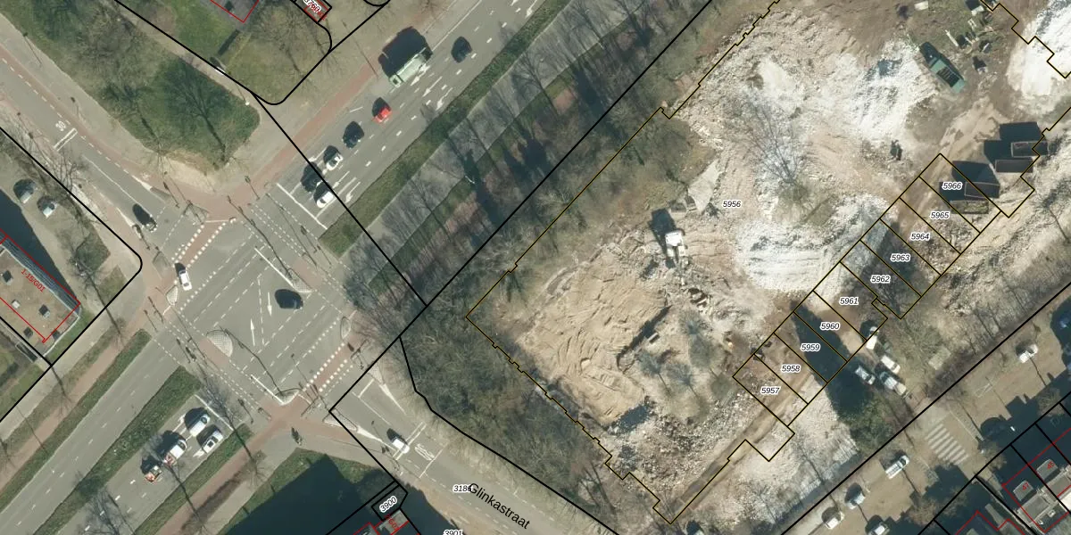 Het perceel waarop Glinkastraat 7 staat heeft een oppervlakte van 5515 m². Dit is een zeer groot perceel. De perceeloppervlakte wordt geregistreerd door het Kadaster. Gedetailleerde informatie over de maten van dit perceel kunt u vinden in het rapport Kadastrale kaart met maatvoering van Glinkastraat 7.