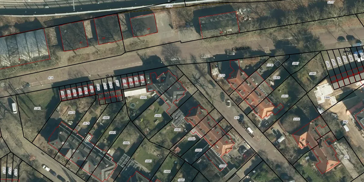 Gebruik de zoekbalk of klik op een perceel voor informatie over de adressen binnen dit perceel.