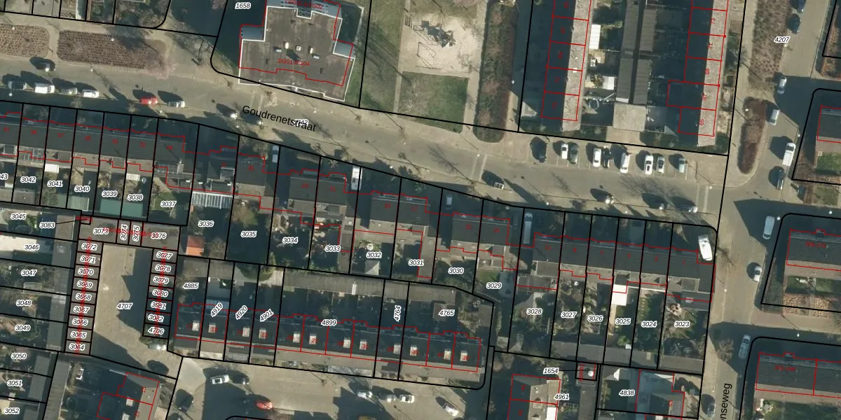 Gebruik de zoekbalk of klik op een perceel voor informatie over de adressen binnen dit perceel.