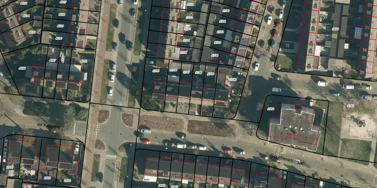 Gebruik de zoekbalk of klik op een perceel voor informatie over de adressen binnen dit perceel.