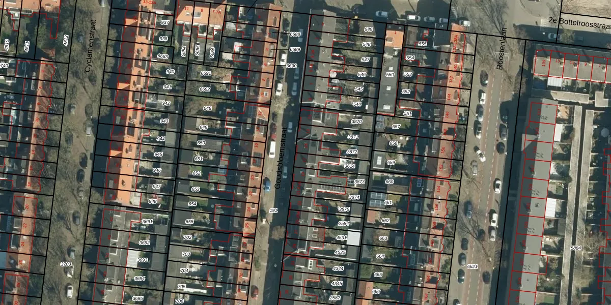 Het perceel waarop Goudsbloemstraat 15 staat heeft een oppervlakte van 116 m². Dit is een middelgroot perceel. De perceeloppervlakte wordt geregistreerd door het Kadaster. Gedetailleerde informatie over de maten van dit perceel kunt u vinden in het rapport Kadastrale kaart met maatvoering van Goudsbloemstraat 15.