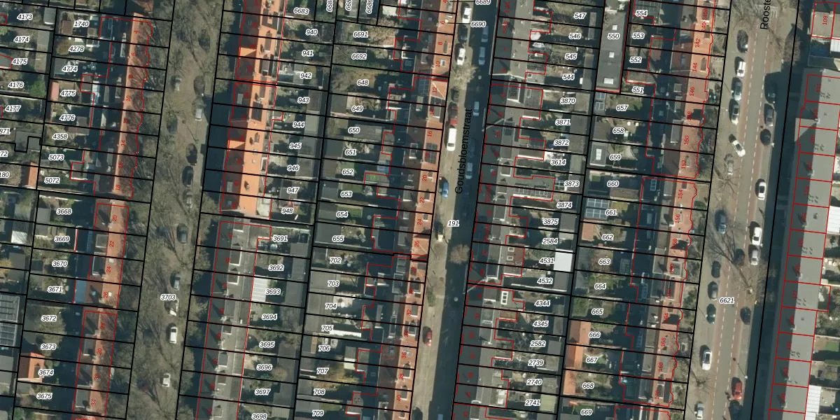 Het perceel waarop Goudsbloemstraat 22 staat heeft een oppervlakte van 141 m². Dit is een middelgroot perceel. De perceeloppervlakte wordt geregistreerd door het Kadaster. Gedetailleerde informatie over de maten van dit perceel kunt u vinden in het rapport Kadastrale kaart met maatvoering van Goudsbloemstraat 22.