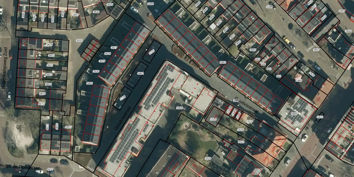 Goudvisstraat 54 is gelegen op kadastraal perceel GTL01D5864. Deze kadastrale aanduiding is uniek en wordt gebruikt door het Kadaster om eigendomsrechten en andere zakelijke rechten vast te leggen. Het perceel maakt onderdeel uit van de kadastrale gemeente Gestel.