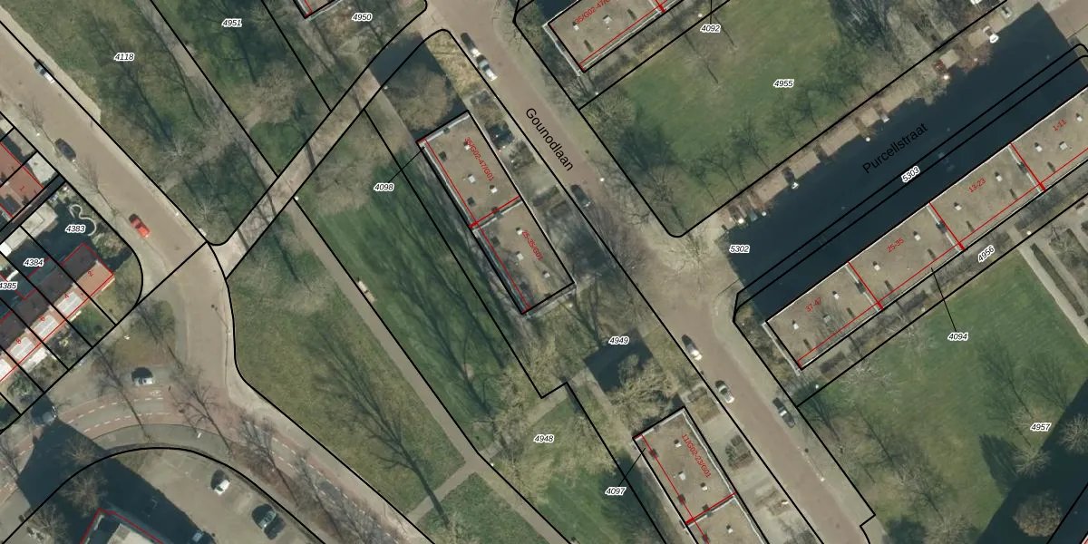 Het perceel waarop Gounodlaan 29 staat heeft een oppervlakte van 412 m². Dit is een groot perceel. De perceeloppervlakte wordt geregistreerd door het Kadaster. Gedetailleerde informatie over de maten van dit perceel kunt u vinden in het rapport Kadastrale kaart met maatvoering van Gounodlaan 29.
