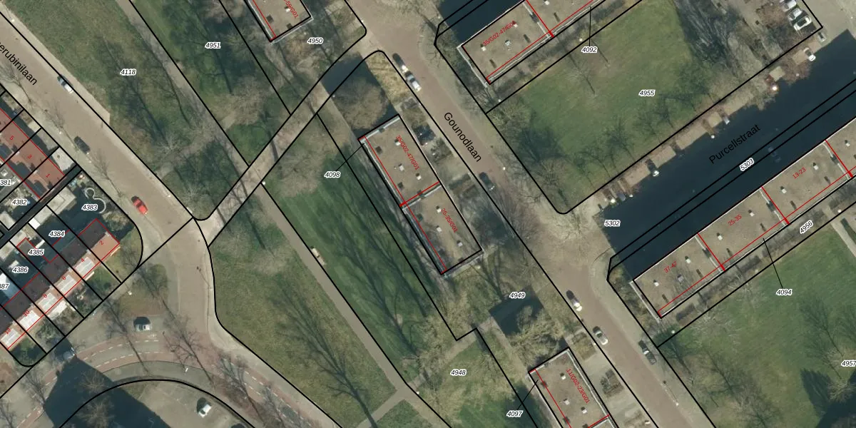 Het perceel waarop Gounodlaan 35 staat heeft een oppervlakte van 412 m². Dit is een groot perceel. De perceeloppervlakte wordt geregistreerd door het Kadaster. Gedetailleerde informatie over de maten van dit perceel kunt u vinden in het rapport Kadastrale kaart met maatvoering van Gounodlaan 35.
