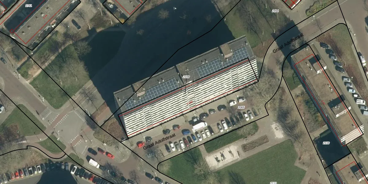 Het perceel waarop Graaf Adolfstraat 120 staat heeft een oppervlakte van 1090 m². Dit is een zeer groot perceel. De perceeloppervlakte wordt geregistreerd door het Kadaster. Gedetailleerde informatie over de maten van dit perceel kunt u vinden in het rapport Kadastrale kaart met maatvoering van Graaf Adolfstraat 120.