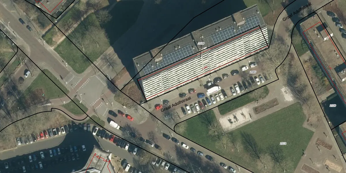 Het perceel waarop Graaf Adolfstraat 122 staat heeft een oppervlakte van 1090 m². Dit is een zeer groot perceel. De perceeloppervlakte wordt geregistreerd door het Kadaster. Gedetailleerde informatie over de maten van dit perceel kunt u vinden in het rapport Kadastrale kaart met maatvoering van Graaf Adolfstraat 122.