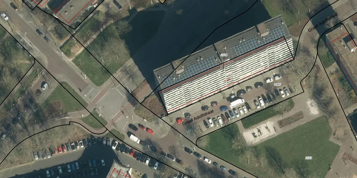 Het perceel waarop Graaf Adolfstraat 156 staat heeft een oppervlakte van 1090 m². Dit is een zeer groot perceel. De perceeloppervlakte wordt geregistreerd door het Kadaster. Gedetailleerde informatie over de maten van dit perceel kunt u vinden in het rapport Kadastrale kaart met maatvoering van Graaf Adolfstraat 156.