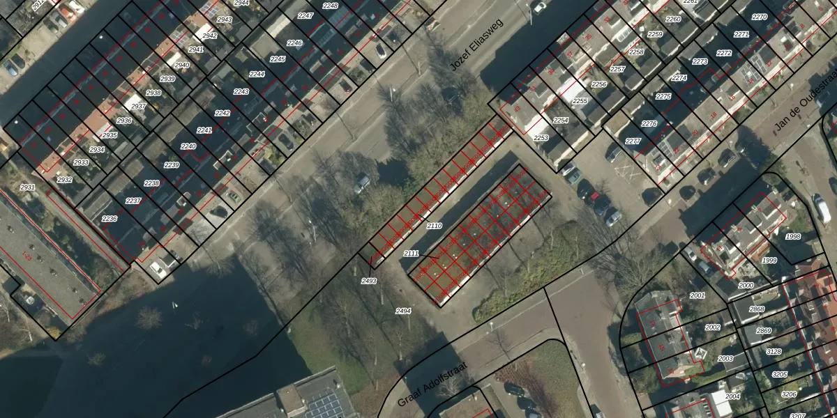 Graaf Adolfstraat 2-G005 is gelegen op kadastraal perceel STR03D2110. Deze kadastrale aanduiding is uniek en wordt gebruikt door het Kadaster om eigendomsrechten en andere zakelijke rechten vast te leggen. Het perceel maakt onderdeel uit van de kadastrale gemeente Strijp.