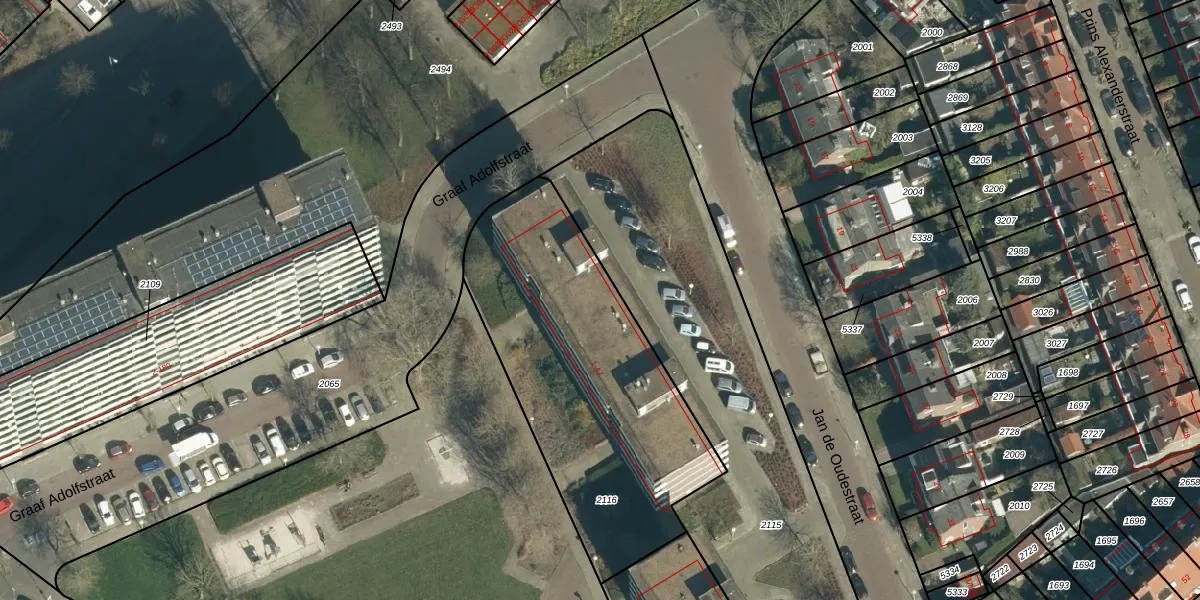 Het perceel waarop Graaf Adolfstraat 23 staat heeft een oppervlakte van 1410 m². Dit is een zeer groot perceel. De perceeloppervlakte wordt geregistreerd door het Kadaster. Gedetailleerde informatie over de maten van dit perceel kunt u vinden in het rapport Kadastrale kaart met maatvoering van Graaf Adolfstraat 23.