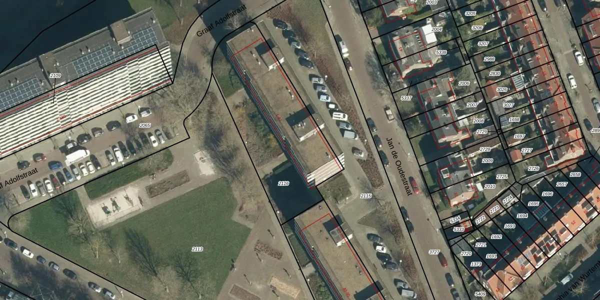 Het perceel waarop Graaf Adolfstraat 35 staat heeft een oppervlakte van 1410 m². Dit is een zeer groot perceel. De perceeloppervlakte wordt geregistreerd door het Kadaster. Gedetailleerde informatie over de maten van dit perceel kunt u vinden in het rapport Kadastrale kaart met maatvoering van Graaf Adolfstraat 35.
