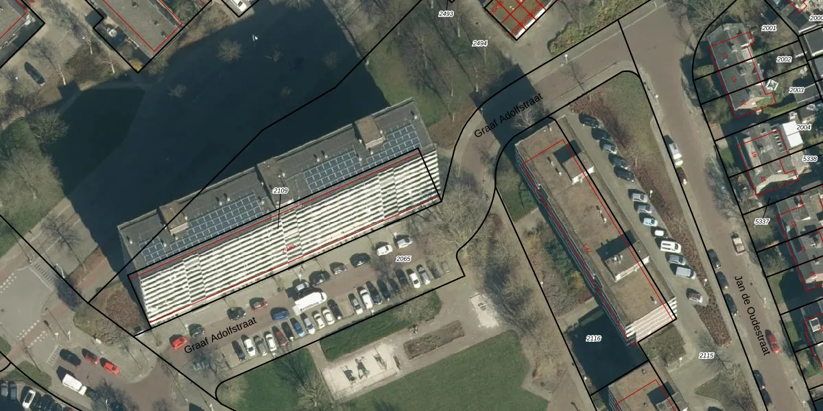 Het perceel waarop Graaf Adolfstraat 38 staat heeft een oppervlakte van 1090 m². Dit is een zeer groot perceel. De perceeloppervlakte wordt geregistreerd door het Kadaster. Gedetailleerde informatie over de maten van dit perceel kunt u vinden in het rapport Kadastrale kaart met maatvoering van Graaf Adolfstraat 38.