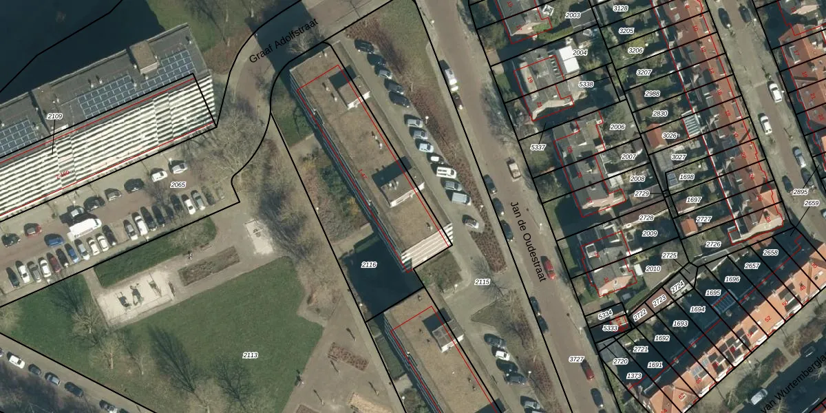 Het perceel waarop Graaf Adolfstraat 39 staat heeft een oppervlakte van 1410 m². Dit is een zeer groot perceel. De perceeloppervlakte wordt geregistreerd door het Kadaster. Gedetailleerde informatie over de maten van dit perceel kunt u vinden in het rapport Kadastrale kaart met maatvoering van Graaf Adolfstraat 39.
