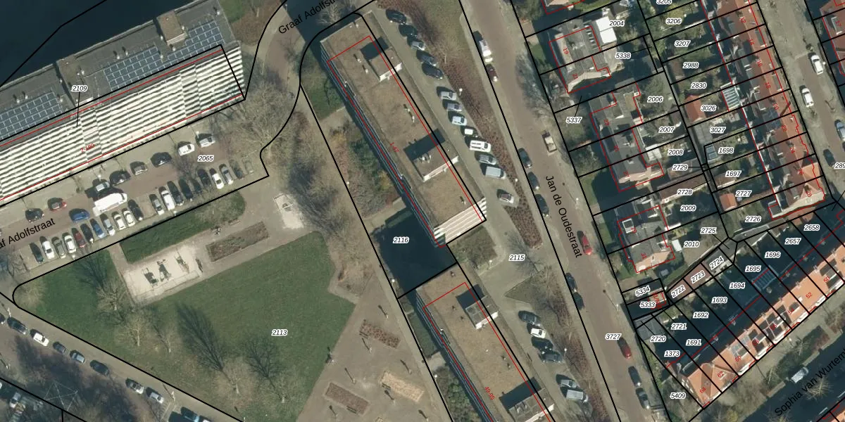 Graaf Adolfstraat 41 is gelegen op kadastraal perceel STR03D2116. Deze kadastrale aanduiding is uniek en wordt gebruikt door het Kadaster om eigendomsrechten en andere zakelijke rechten vast te leggen. Het perceel maakt onderdeel uit van de kadastrale gemeente Strijp.