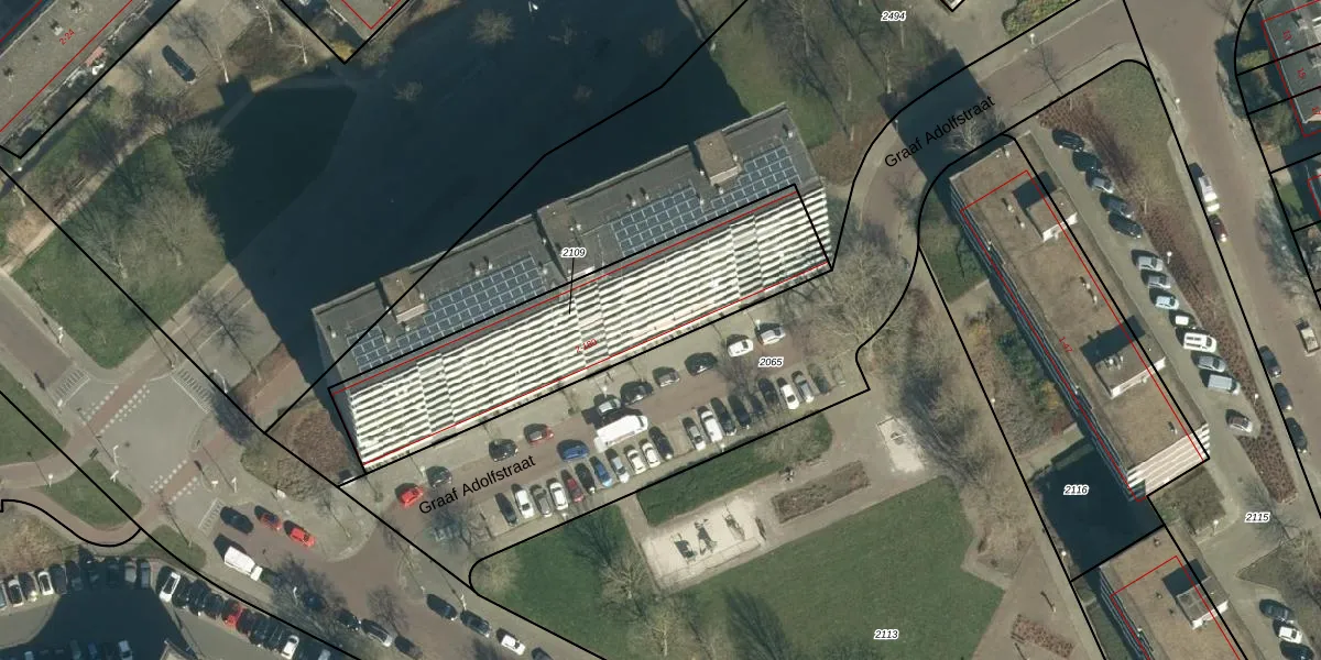 Het perceel waarop Graaf Adolfstraat 62 staat heeft een oppervlakte van 1090 m². Dit is een zeer groot perceel. De perceeloppervlakte wordt geregistreerd door het Kadaster. Gedetailleerde informatie over de maten van dit perceel kunt u vinden in het rapport Kadastrale kaart met maatvoering van Graaf Adolfstraat 62.
