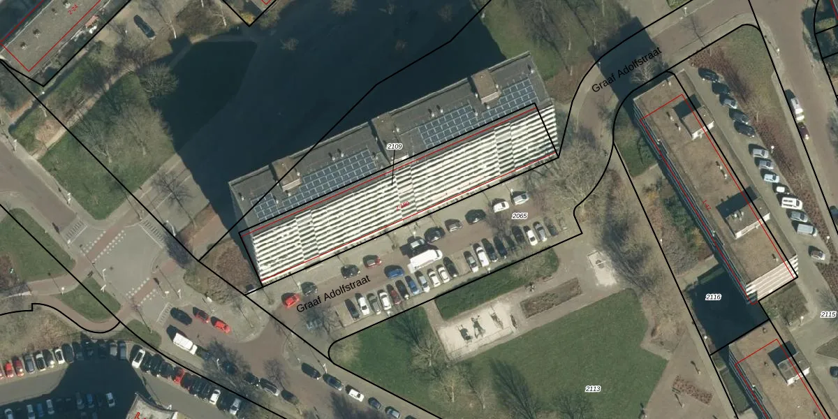 Het perceel waarop Graaf Adolfstraat 98 staat heeft een oppervlakte van 1090 m². Dit is een zeer groot perceel. De perceeloppervlakte wordt geregistreerd door het Kadaster. Gedetailleerde informatie over de maten van dit perceel kunt u vinden in het rapport Kadastrale kaart met maatvoering van Graaf Adolfstraat 98.
