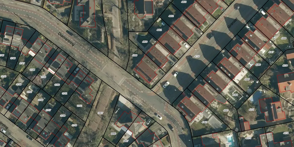 Granaat 1 is gelegen op kadastraal perceel WSL01W4399. Deze kadastrale aanduiding is uniek en wordt gebruikt door het Kadaster om eigendomsrechten en andere zakelijke rechten vast te leggen. Het perceel maakt onderdeel uit van de kadastrale gemeente Woensel.