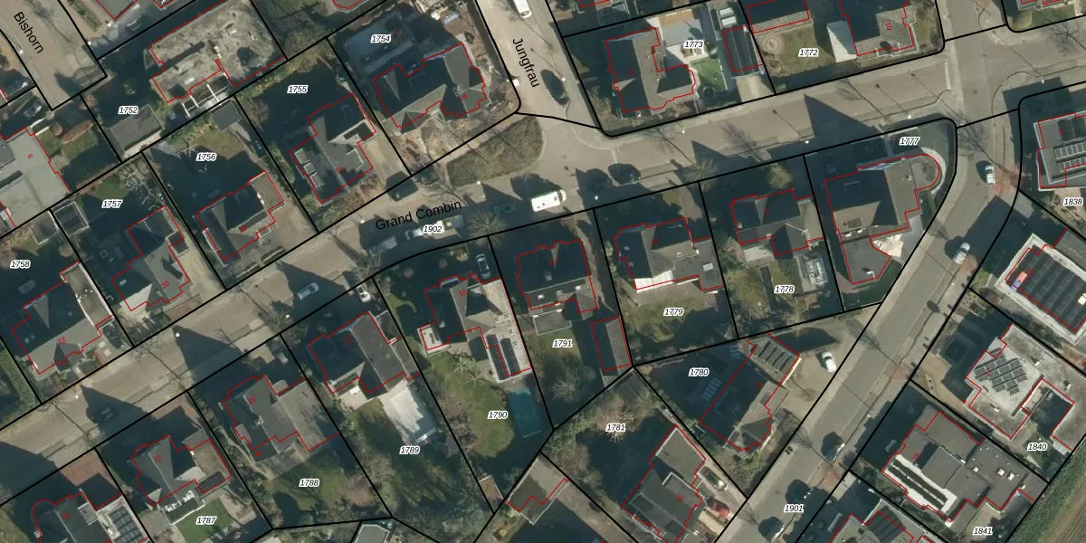 Het perceel waarop Grand Combin 13 staat heeft een oppervlakte van 638 m². Dit is een groot perceel. De perceeloppervlakte wordt geregistreerd door het Kadaster. Gedetailleerde informatie over de maten van dit perceel kunt u vinden in het rapport Kadastrale kaart met maatvoering van Grand Combin 13.