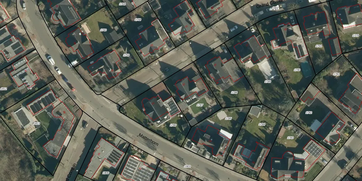 Het perceel waarop Grand Combin 21 staat heeft een oppervlakte van 602 m². Dit is een groot perceel. De perceeloppervlakte wordt geregistreerd door het Kadaster. Gedetailleerde informatie over de maten van dit perceel kunt u vinden in het rapport Kadastrale kaart met maatvoering van Grand Combin 21.
