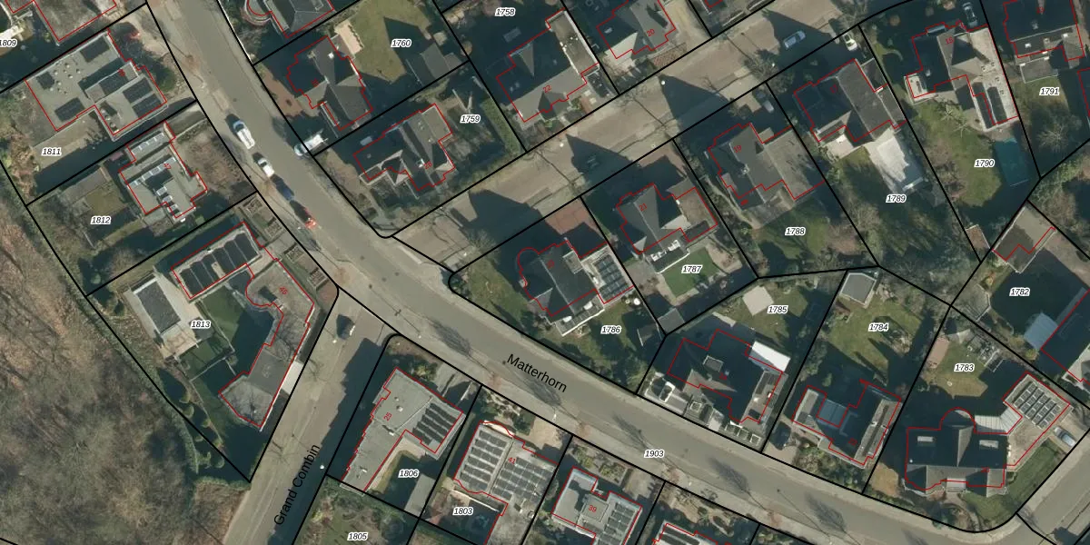Het perceel waarop Grand Combin 23 staat heeft een oppervlakte van 716 m². Dit is een groot perceel. De perceeloppervlakte wordt geregistreerd door het Kadaster. Gedetailleerde informatie over de maten van dit perceel kunt u vinden in het rapport Kadastrale kaart met maatvoering van Grand Combin 23.