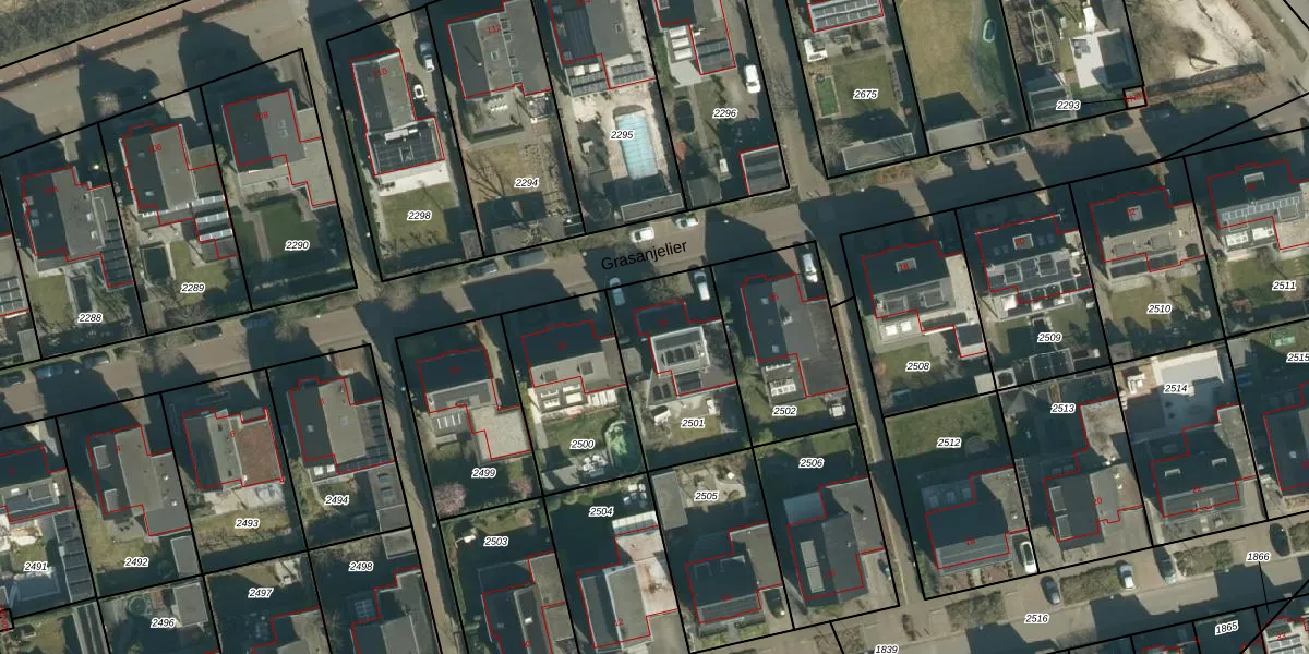 Grasanjelier 14 is gelegen op kadastraal perceel STR03G2501. Deze kadastrale aanduiding is uniek en wordt gebruikt door het Kadaster om eigendomsrechten en andere zakelijke rechten vast te leggen. Het perceel maakt onderdeel uit van de kadastrale gemeente Strijp.