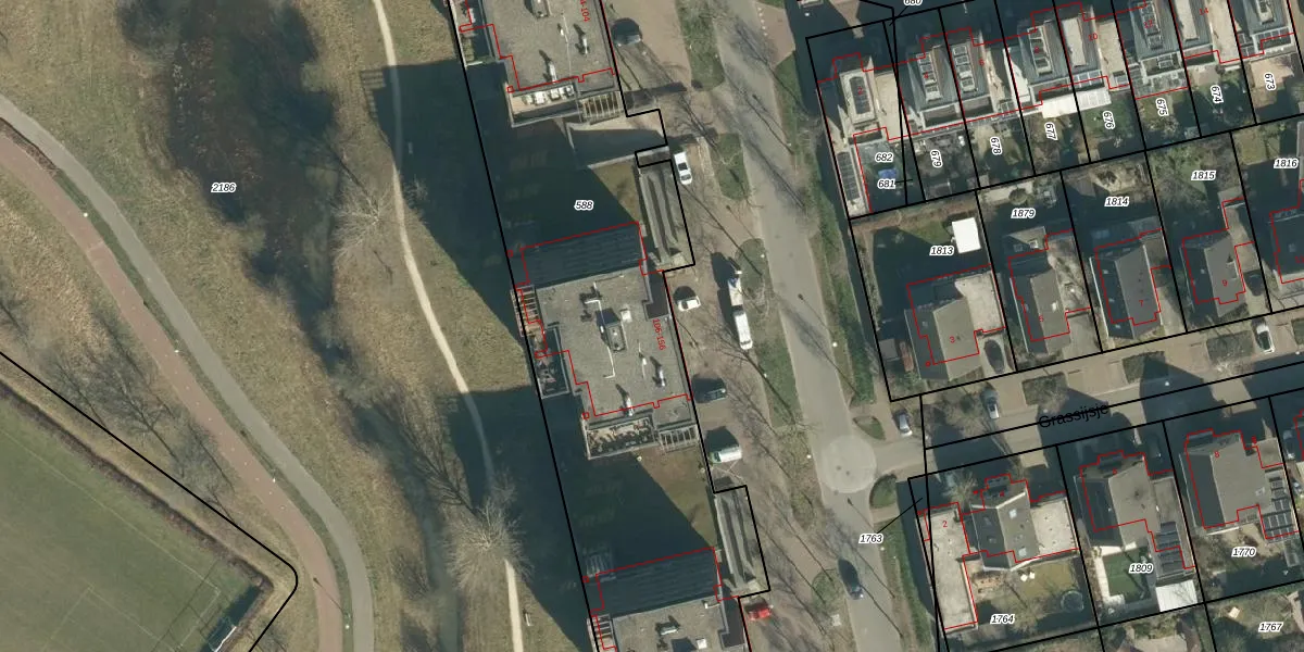 Grasbaan 118 is gelegen op kadastraal perceel STR03G588. Deze kadastrale aanduiding is uniek en wordt gebruikt door het Kadaster om eigendomsrechten en andere zakelijke rechten vast te leggen. Het perceel maakt onderdeel uit van de kadastrale gemeente Strijp.