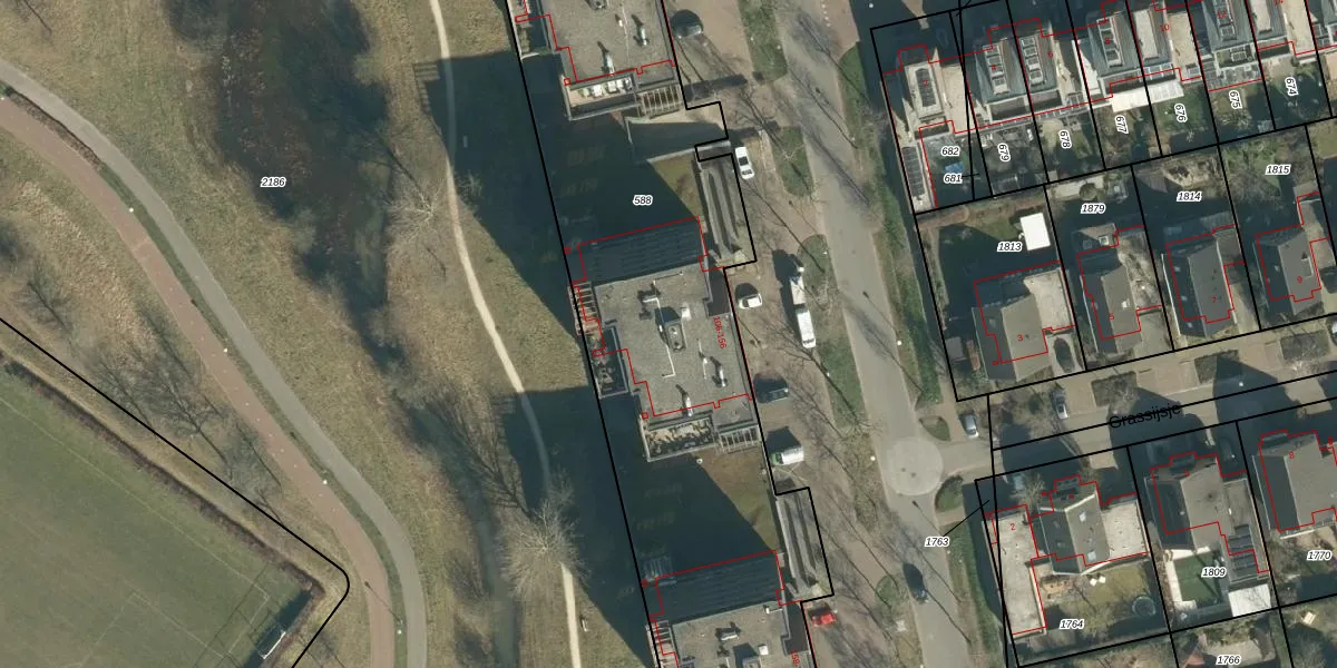 Grasbaan 142 is gelegen op kadastraal perceel STR03G588. Deze kadastrale aanduiding is uniek en wordt gebruikt door het Kadaster om eigendomsrechten en andere zakelijke rechten vast te leggen. Het perceel maakt onderdeel uit van de kadastrale gemeente Strijp.
