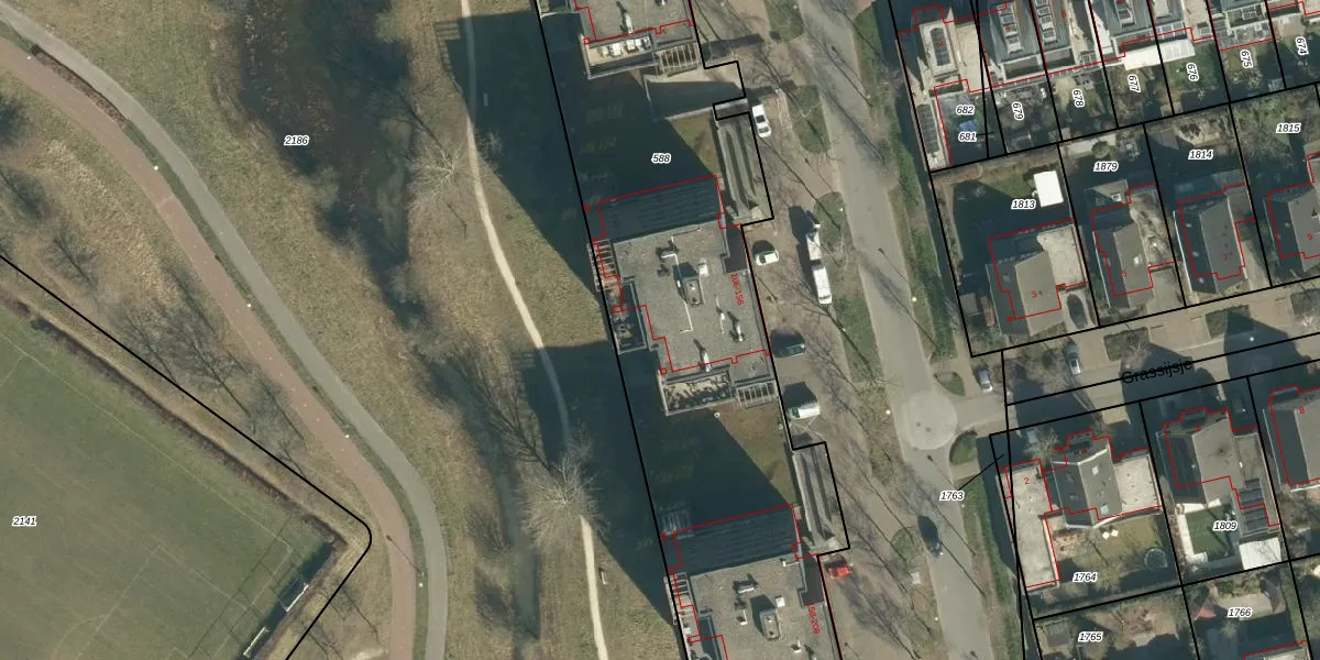 Grasbaan 154 is gelegen op kadastraal perceel STR03G588. Deze kadastrale aanduiding is uniek en wordt gebruikt door het Kadaster om eigendomsrechten en andere zakelijke rechten vast te leggen. Het perceel maakt onderdeel uit van de kadastrale gemeente Strijp.