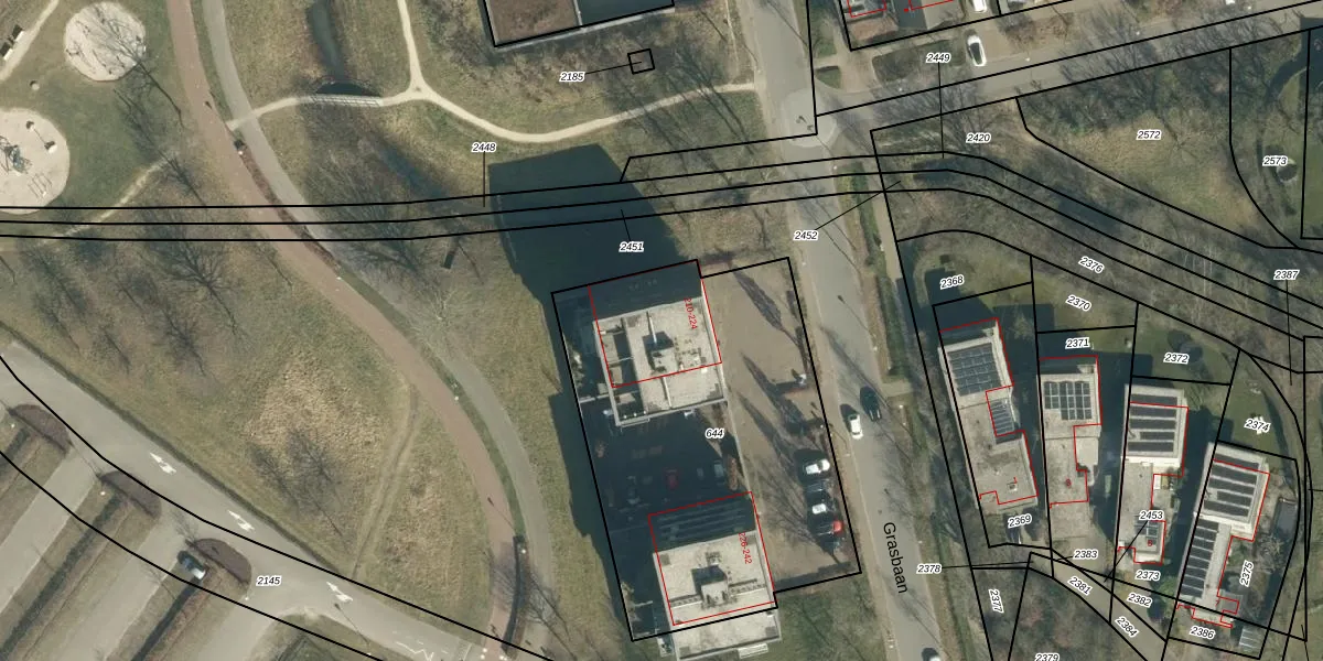 Grasbaan 224 is gelegen op kadastraal perceel STR03G644. Deze kadastrale aanduiding is uniek en wordt gebruikt door het Kadaster om eigendomsrechten en andere zakelijke rechten vast te leggen. Het perceel maakt onderdeel uit van de kadastrale gemeente Strijp.