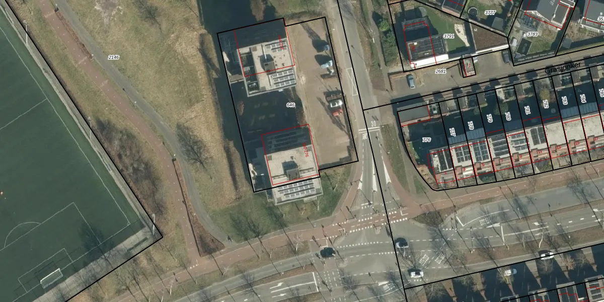 Grasbaan 264 is gelegen op kadastraal perceel STR03G646. Deze kadastrale aanduiding is uniek en wordt gebruikt door het Kadaster om eigendomsrechten en andere zakelijke rechten vast te leggen. Het perceel maakt onderdeel uit van de kadastrale gemeente Strijp.