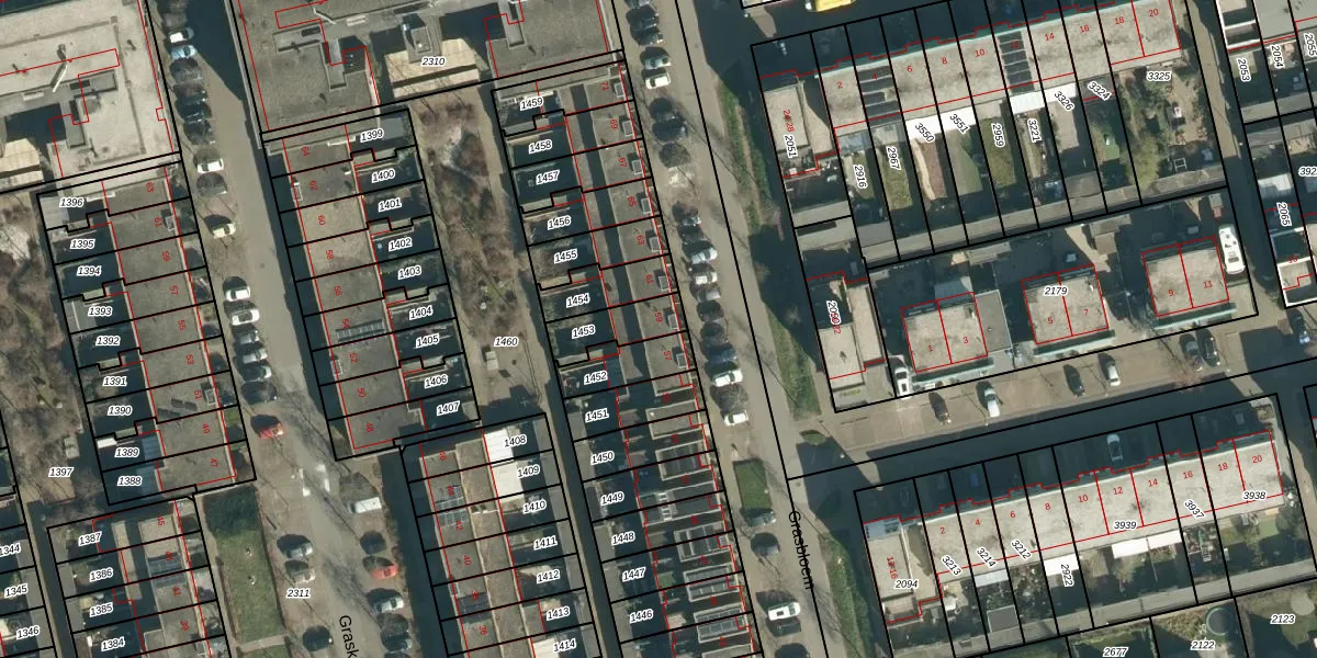 Grasbloem 59 is gelegen op kadastraal perceel STR03G1453. Deze kadastrale aanduiding is uniek en wordt gebruikt door het Kadaster om eigendomsrechten en andere zakelijke rechten vast te leggen. Het perceel maakt onderdeel uit van de kadastrale gemeente Strijp.