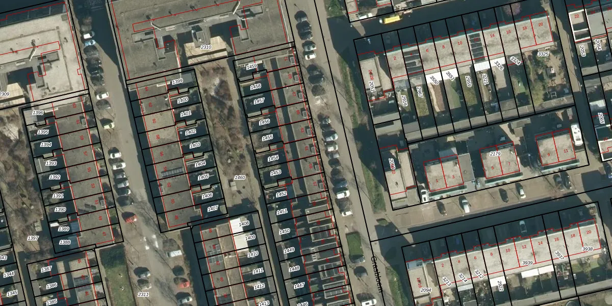 Grasbloem 61 is gelegen op kadastraal perceel STR03G1454. Deze kadastrale aanduiding is uniek en wordt gebruikt door het Kadaster om eigendomsrechten en andere zakelijke rechten vast te leggen. Het perceel maakt onderdeel uit van de kadastrale gemeente Strijp.