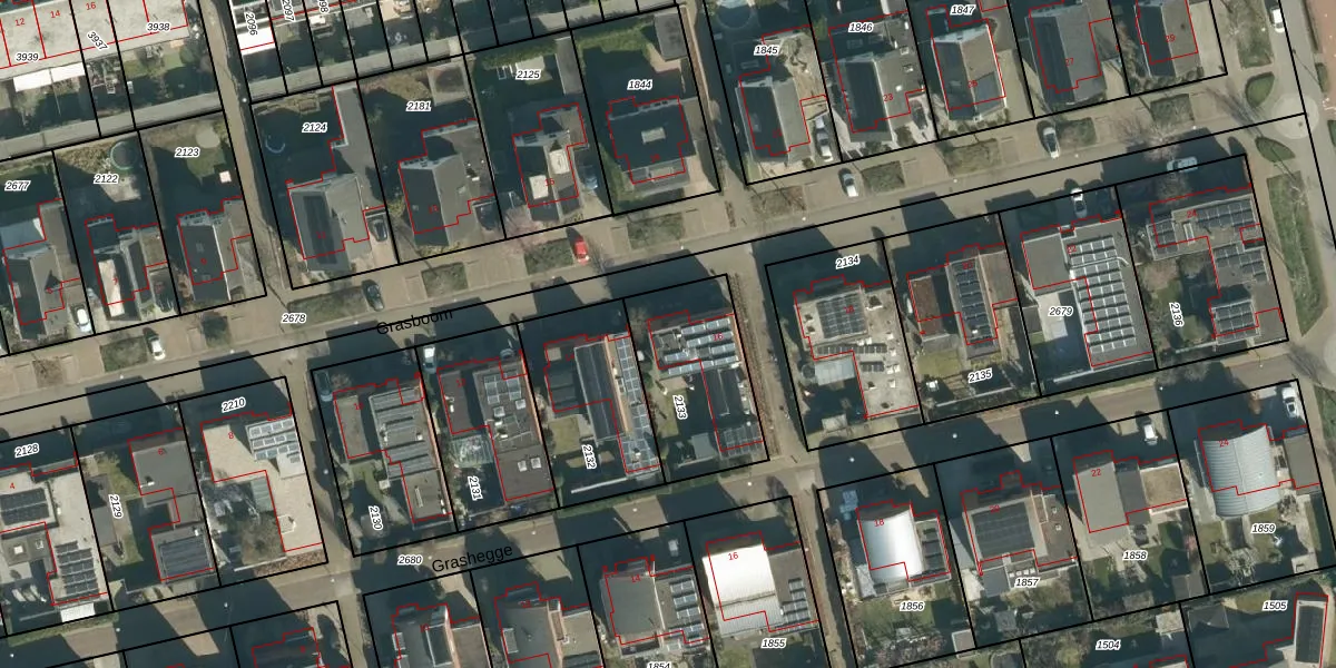 Het perceel waarop Grasboom 16 staat heeft een oppervlakte van 453 m². Dit is een groot perceel. De perceeloppervlakte wordt geregistreerd door het Kadaster. Gedetailleerde informatie over de maten van dit perceel kunt u vinden in het rapport Kadastrale kaart met maatvoering van Grasboom 16.