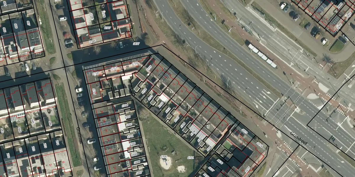 Grasdreef 17 is gelegen op kadastraal perceel STR03G1712. Deze kadastrale aanduiding is uniek en wordt gebruikt door het Kadaster om eigendomsrechten en andere zakelijke rechten vast te leggen. Het perceel maakt onderdeel uit van de kadastrale gemeente Strijp.