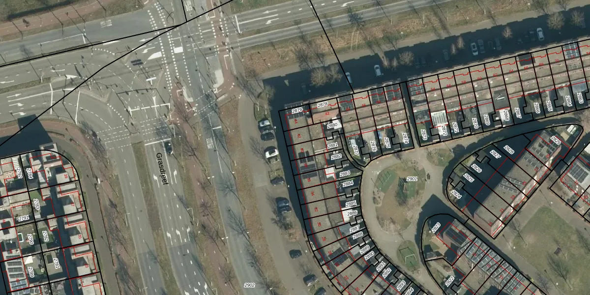 Grasdreef 40 is gelegen op kadastraal perceel STR03G2881. Deze kadastrale aanduiding is uniek en wordt gebruikt door het Kadaster om eigendomsrechten en andere zakelijke rechten vast te leggen. Het perceel maakt onderdeel uit van de kadastrale gemeente Strijp.