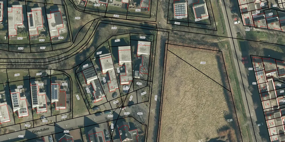 Gebruik de zoekbalk of klik op een perceel voor informatie over de adressen binnen dit perceel.